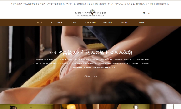 This is the website for “Mellowscape,” an oil massage salon located in Hakata Ward, Fukuoka City. They utilize HEAL.