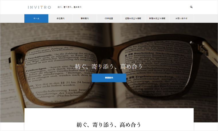 This is the website for InVitro Co., Ltd., which operates businesses such as reemployment support and real estate brokerage. They are using the corporate site theme NANO.
