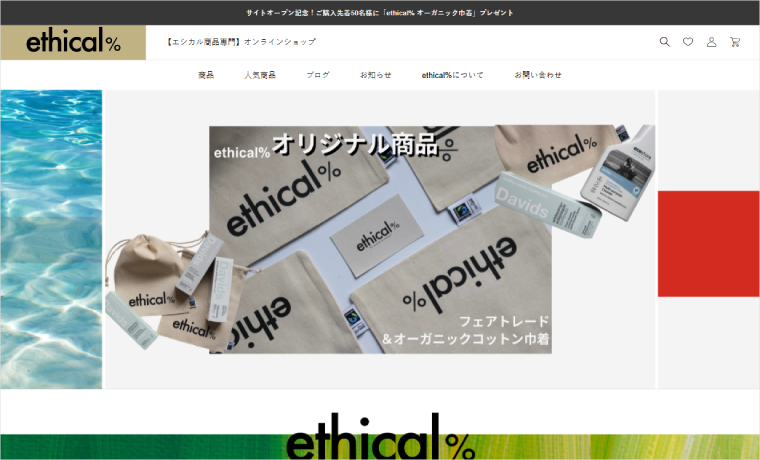 The ethical product specialty online shop “ethical%” has adopted RIKYU for their website.