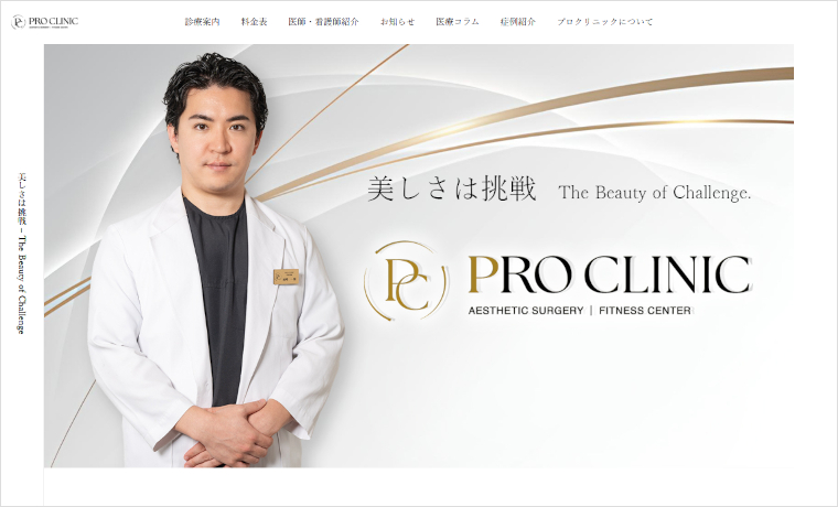 ・Brand Expression: Unified “cleanliness × premium quality” aesthetic using black × gold as the base, featuring clinic photos and treatment scenes. Key visuals promote “The Beauty of Challenge”.
