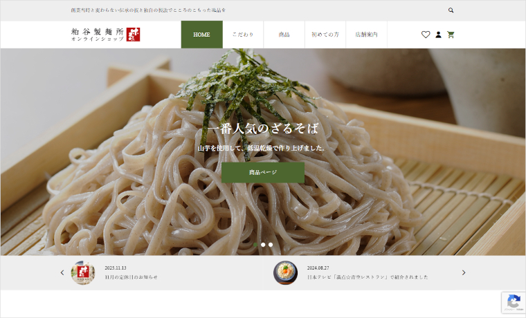 The homepage visually highlights flagship products like “Bamboo-Split Udon” and “Zaru Soba” through a stylish design. The layout intuitively conveys product appeal, naturally boosting user purchase intent through well-designed navigation.