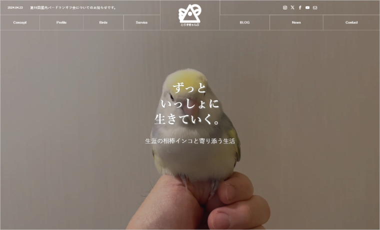 The video placed in the homepage header captures the adorable, natural behavior of a parakeet, soothing visitors’ hearts. Utilizing video creates a visually compelling layout that effectively captures visitors’ interest. It’s also possible to use a static image slider instead of video.