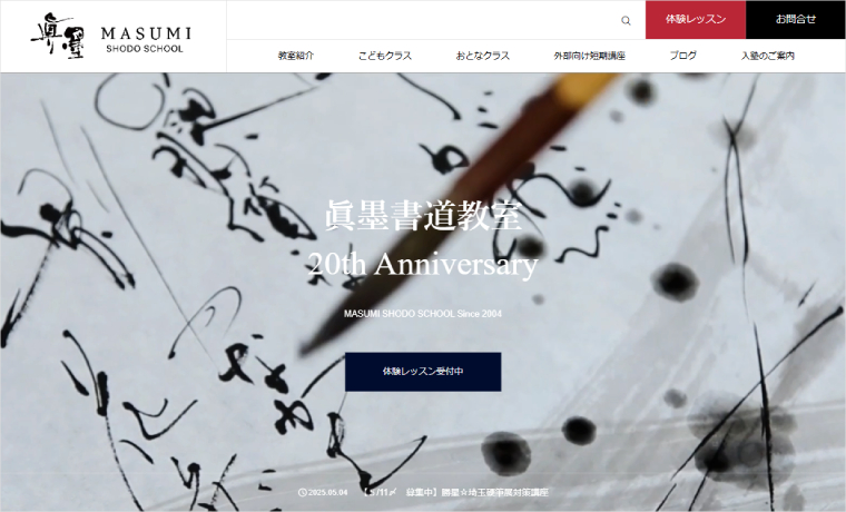 Introducing the website for “Masumi Calligraphy School,” which operates a calligraphy classroom in Kawagoe City, Saitama Prefecture. They are using the TCD theme CANON. Having celebrated their 20th anniversary since opening, it’s clear this is a classroom deeply rooted in the community and beloved by many students.