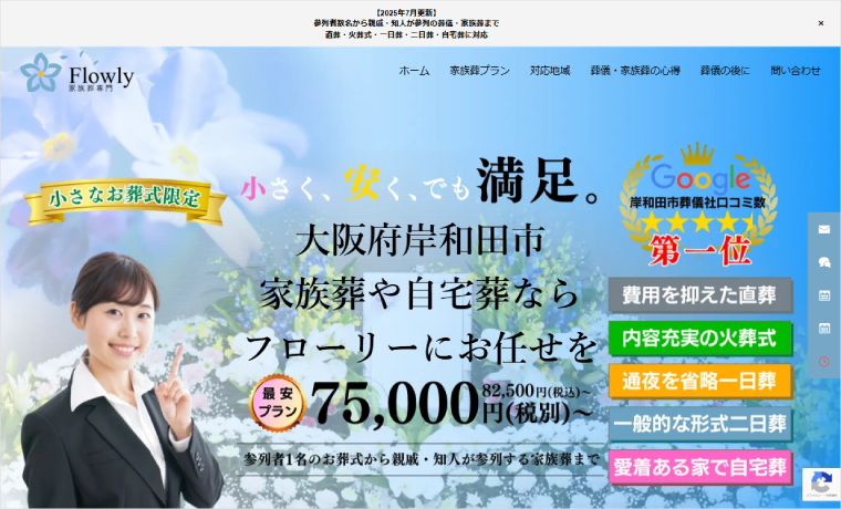 This is the website for “Flowly, Specializing in Family Funerals” in Kishiwada City, Osaka Prefecture. They use CURE.