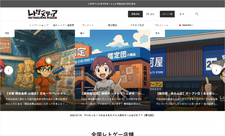 This is the website of “Retro Game Media,” which distributes information about retro games. They are using REHUB.