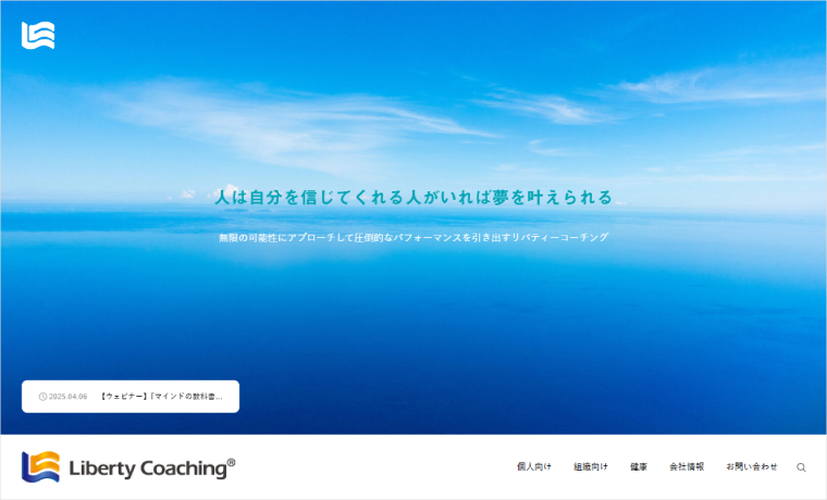 This is the website for Liberty Coaching Co., Ltd., which operates businesses such as providing coaching and coaching programs. They utilize MONAD.