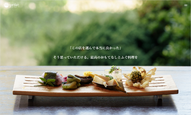 The first view features an attractive “fugu dish” displayed in a large format, making an impact on site visitors while building anticipation for the restaurant. You can set any number of images for the slider.