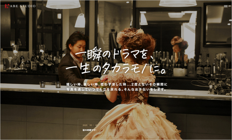 This is the website for Abe Studio, a photography studio in Mitsumata Town, Kitamoro County, Miyazaki Prefecture. They use TENJIKU.