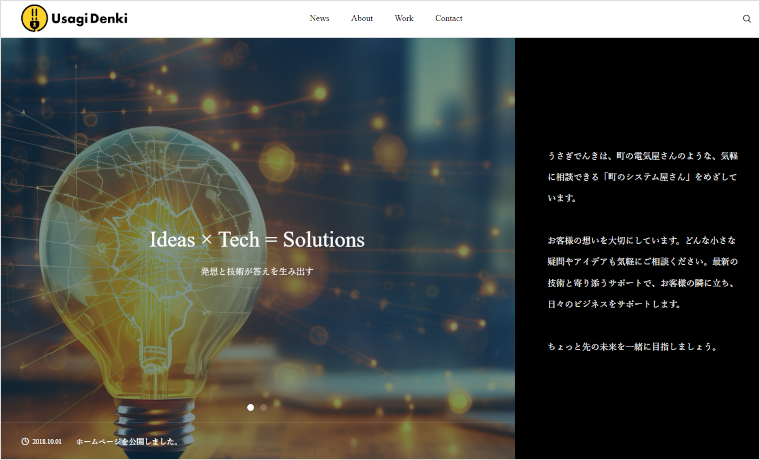 The horizontally scrolling theme HORIZON has been adopted for the website of Usagi Denki.