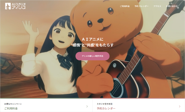 The first view features a video explaining the animation production process. It visually demonstrates how live-action movements are converted into animation through AI and motion capture. The header content also supports an image slider.
