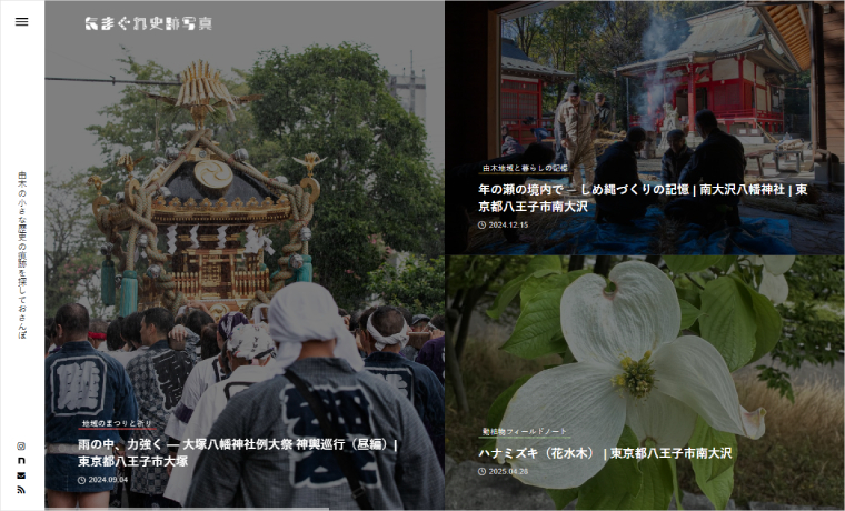 The website “Historical Site Photos,” which meticulously documents the landscapes, prayers, and daily activities encountered in the lives of people primarily in the Yuki area of Hachioji, Tokyo. They use CODE..