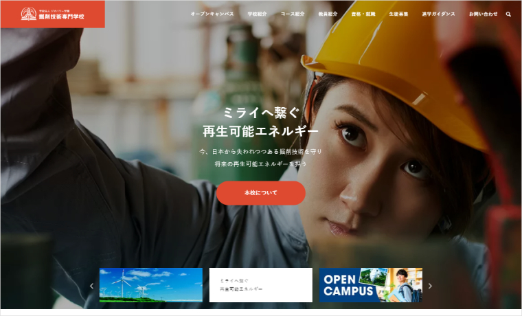 As the website for a technical school specializing in drilling technology, which is still a relatively unknown field, we selected the SOLARIS theme to clearly communicate that this is a place to learn cutting-edge renewable energy technologies. We aimed to create a layout that conveys the message instantly through photos and videos, making it easy to understand for students and professionals alike.