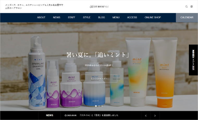This is the website for “CUT HOUSE RIRAKU” in Nagoya, Aichi. They are using HOMME.