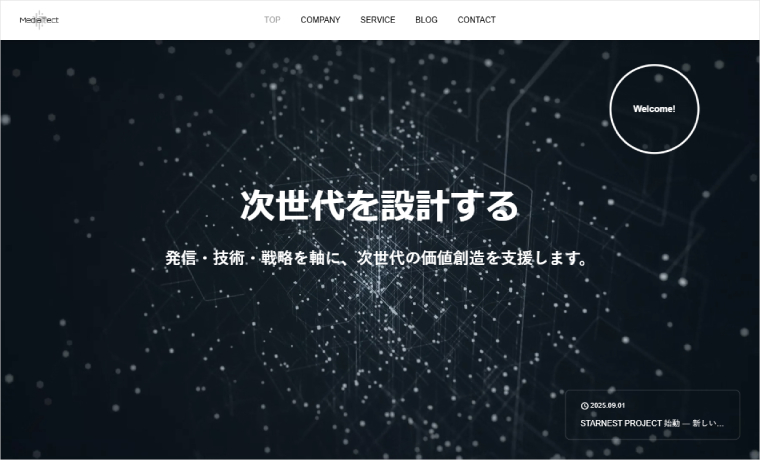 The corporate site of Media Tect Inc. is built with ISSUE.
