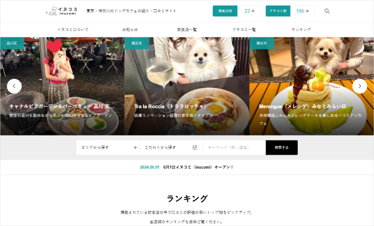 inucomi, a Tokyo and Kanagawa dog cafe introduction and review site, uses REHUB.