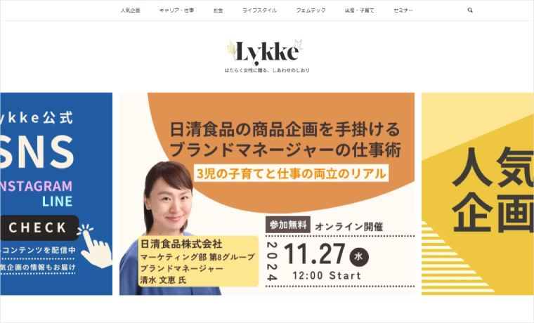 To address the worries and challenges working women face, we host free seminars, interview female managers and role models, and hold roundtable discussions.