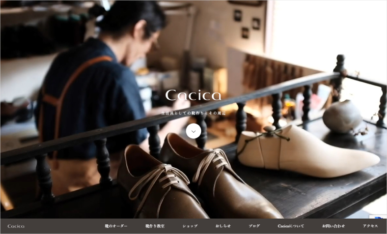 This is the website for Cacica, a shoe workshop located in Omiya Ward, Saitama City. They use the ORION theme.