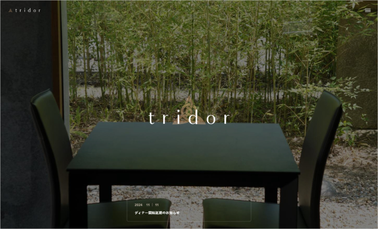 This is the website for “tridor,” a reservation-only restaurant in Anada-cho, Seto City, Aichi Prefecture. They use TENJIKU.
