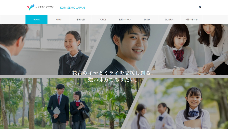 This is the website for the General Incorporated Association Comisemo Japan. It utilizes the corporate site construction theme NANO. The organization primarily focuses on support services related to “education.”