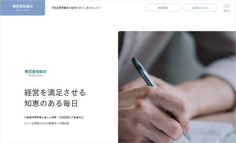 This is the website for Sakurano Inc., which provides real estate transaction consulting services. They utilize the Cherie theme.