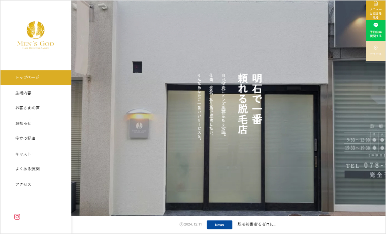 HOLOS is being used by MEN’S GOD, a men’s hair removal salon in Akashi City, Hyogo Prefecture.