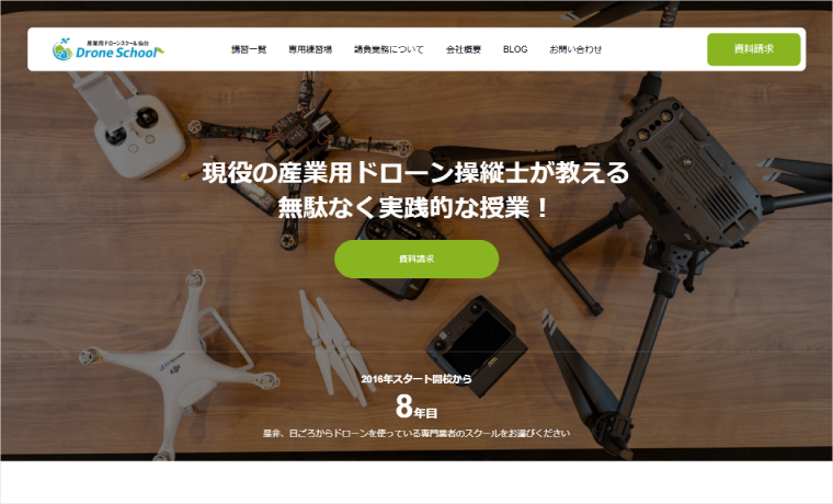 The WordPress theme “SEEED” is being used on the website for “Drone School Sendai”.