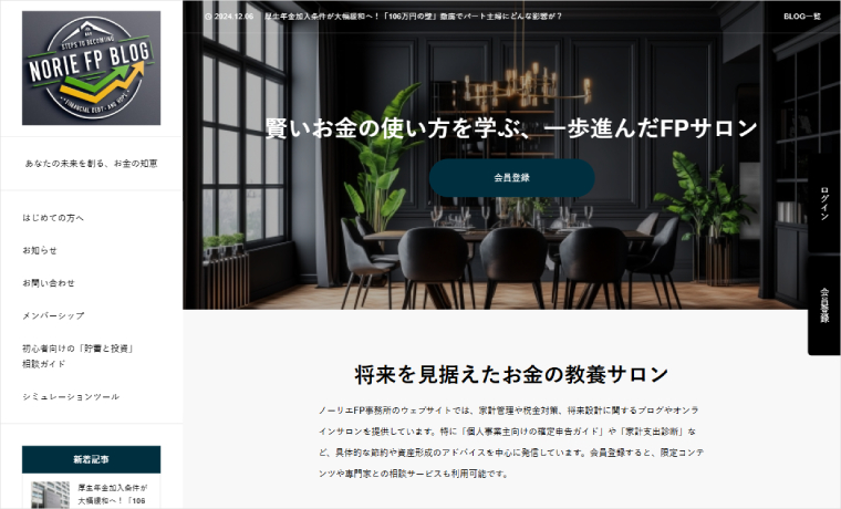 This is the website for Norie FP Office. They are using the “SHIPS” theme, which enables the creation of a membership-based site.