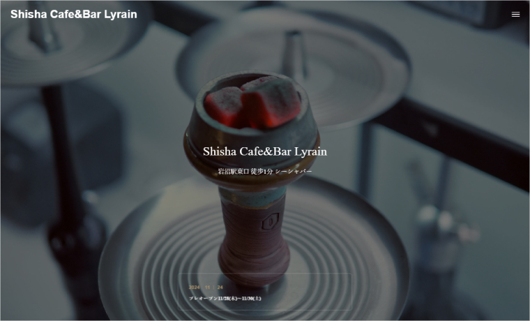 This is the website for Lyrain, a shisha bar in Iwanuma City, Miyagi Prefecture. They use TENJIKU.