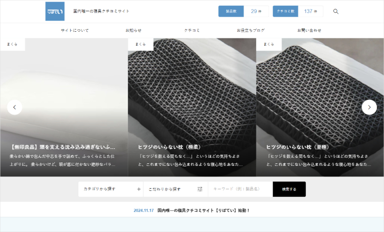 This is the website for the bedding review site “Ribatei.” They utilize REHUB, a platform that enables the creation of review sites.