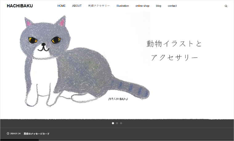 Additionally, this site features particularly striking “illustrations depicting adorable animals” and “embroidered brooches characterized by delicate designs“. The gallery page showcases works beautifully and attractively through its sophisticated layout design.