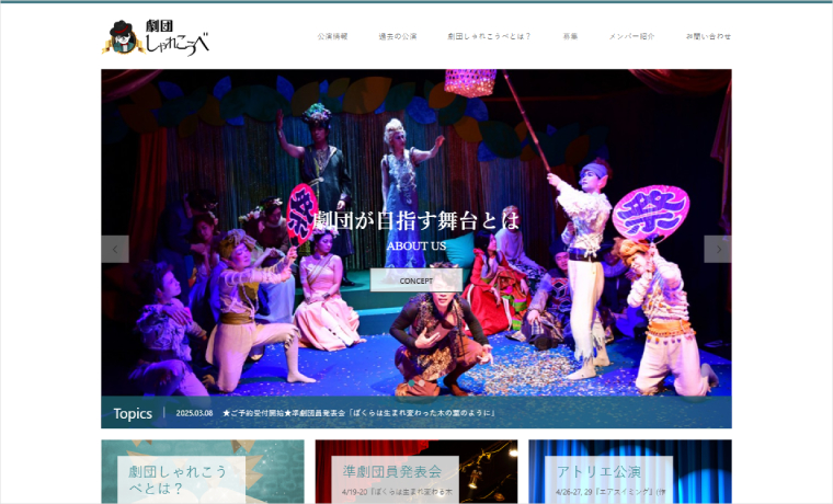 Introducing the official website of “Sharakoube Theater Company.” They have adopted the WordPress theme “SKIN”.