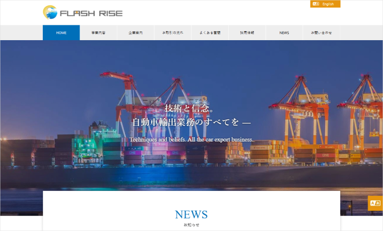 This is the corporate website for FLASH RISE Co., Ltd., headquartered in Aichi Prefecture. They utilize the NANO theme.